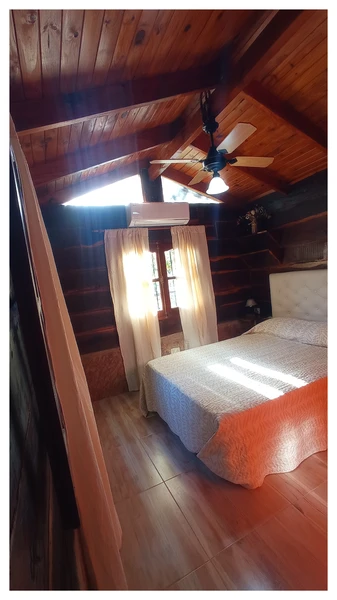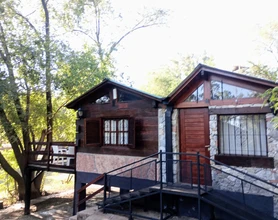Hermosa cabaña de troncos de quebracho colorado y piedras. Situada en un entorno natural, todo arbolado y serpenteada por el arroyo chimcalcoltina de aguas cristalinas.