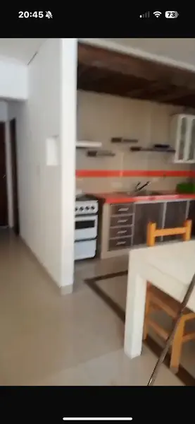 Cocina con revestimiento de porcelanato. Heladera con frezer a estrenar. Mesa y sillas