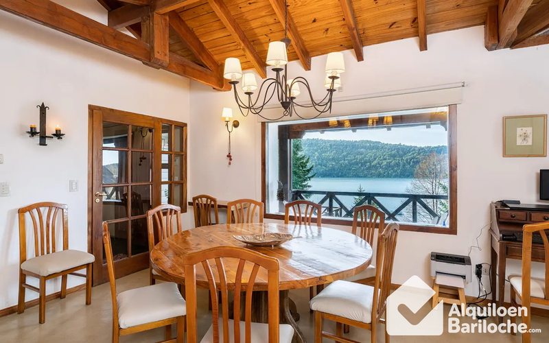 Ubicada en un exclusivo barrio cerrado sobre la ruta a Llao-Llao, esta casa ofrece vistas panorámicas al lago Nahuel Huapi y acceso a playa privada con muelle y rampa para embarcaciones. Seguridad 24hs. Ideal para familias o parejas que buscan privacidad, confort y conexión directa con la naturaleza, a solo 20 minutos del centro de Bariloche.