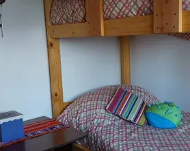 Planta alta: Habitación principal con cama matrimonial y amplio placard. Habitación con cama cucheta .Baño completo .Servicio de sábanas y toallas.