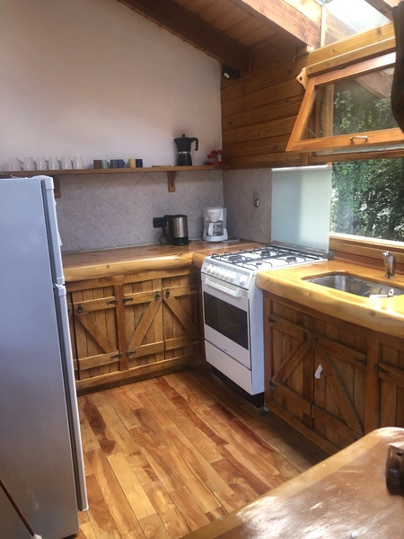 El auto tiene estacionamiento frente a la misma cabaña. No es cubierto pero queda dentro del perímetro del lote, el que se encuentra totalmente cerrado. Si bien nos encontramos cerca del lago Nahuel Huapi, (tres cuadras aproximadamente) teniendo ingreso al lago por el camping Petunia por ejemplo, las cabañas no tienen vista al lago. El check in: 15 hs. Check out: 11 hs. No damos desayuno ni la tarifa incluye el servicio de mucama. La ubicación: se encuentra a la altura del km 14 de av. Bustillo (la que costea el Lago) Exactamente a dos cuadras de distancia de dicha avenida. El barrio cubre todas la necesidades: dos grandes supermercados, centros comerciales, farmacia, casas de comida, cancha de golf, etc.