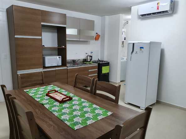 Departamento a estrenar en Bombas. 200 mts de la playa. Hasta 6 personas. 2 dormitorios. Dos baños (1 en suite ). cocina comedor. lavadero. balcón con asador. cochera cubierta. 2 piletas. Área de Jardín y espacio común para fiestas! ascensor. Wifi. servicio de playa. Y ropa blanca.