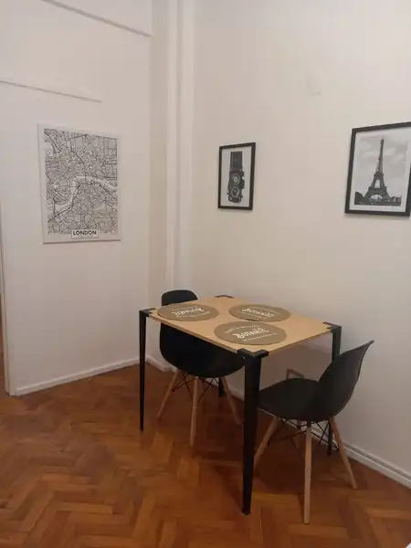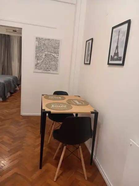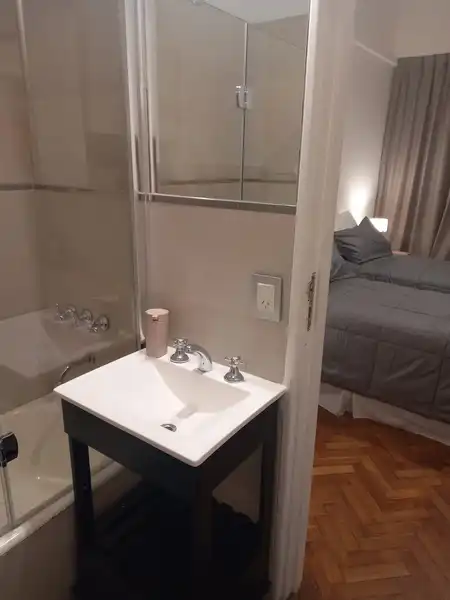 Elegante y lindo monoambiente. Super bien ubicado, a metros de la embajada de Francia. A 50 metros de la Avenida 9 de julio. Sobre calle Arenales, a 100 metros de la Avenida Santa Fe, muy comercial y con varias líneas de transporte púbico. Totalmente equipado. Ascensor. Camas nuevas. Sabanas, toallas, cocina. Baño nuevo. Piso de madera. Cable, wifi. A 800 metros (11 minutos a pie) del teatro Colón y a 1 km del Obelisco (17 minutos a pie).