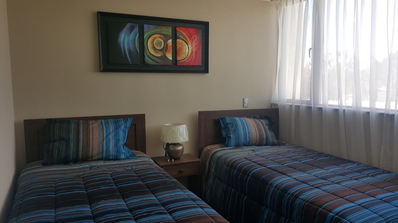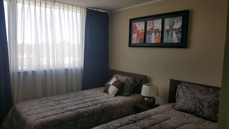 ¿Viajas a Calama? Conoce nuestro nuevo y lujoso departamento recién entregado estilo mariposa, ofrecemos a nuestros clientes un lugar ideal para vivir sus días de trabajo o descanso en un espacio agradable, tranquilo y seguro. Cuenta con dos habitaciones con baños independientes, walking closet, TV cable e internet en cada uno de los dormitorios, completamente equipado para 2 o hasta 4 personas y estacionamiento subterráneo.