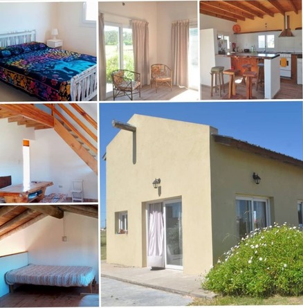 Casa para 7 personas. Habitación con cama de 2 plazas y gran Placard en planta baja. Cocina. Living comedor. Baño completo con bañadera.