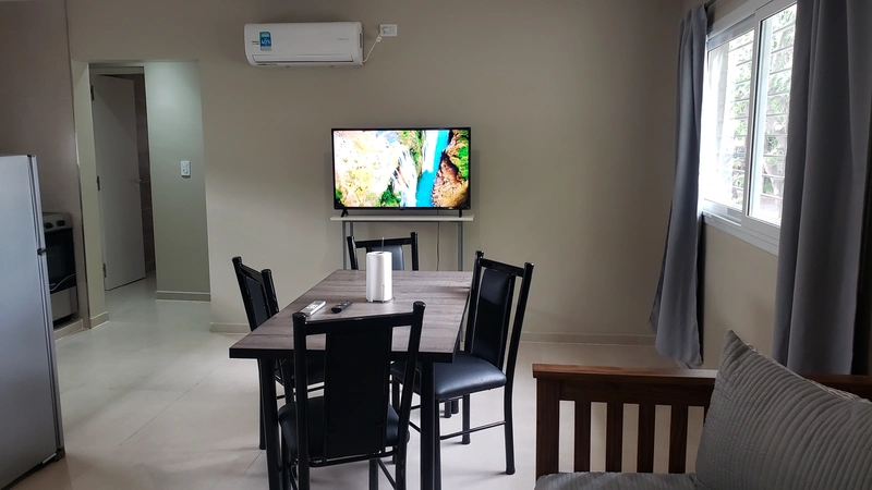 Posee una cocina completa, un baño, una habitación con cama matrimonial y en el living/comedor un sofá cama para 2 personas. Capacidad máxima 4 personas.