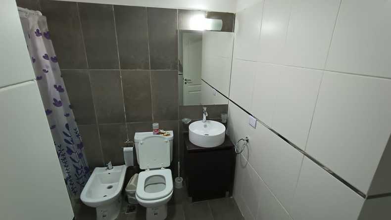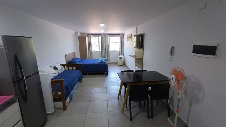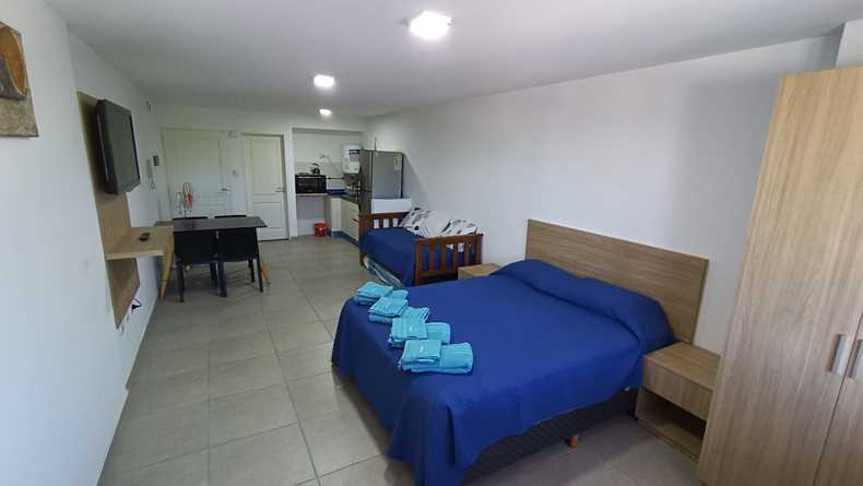 Mono ambiente , con una sommier de 2 plaza y una cama chica ideal para tres persona