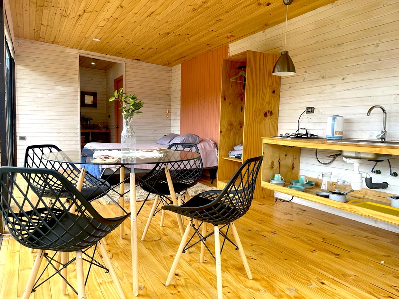 Hermoso lodge ideal para parejas, en el tendrás todas la comodidades para disfrutar, desde agua caliente en la ducha hasta frigobar personal, cocina equipada, cama cómoda y sabanas de calidad. Decorada con atención  y delicadeza para que  el amor fluya. Conexión total con la naturaleza y privacidad garantizada.  Puedes salir a caminar y perderte en el bosque entre las asombrosas vistas a los lagos, a 3 minutos de playa Boyeruca, playa Bucalemu , salares de Cahuil y lo Valdivia, a 35 minutos de Pichilemu.  El lugar tiene una magia y un  encanto , te dará noches estrelladas y potentes lunas, atardeceres rojos y amaneceres húmedos con la aguada. En sus alrededores tienes pesca, ruta del vino, surf... entre otros.