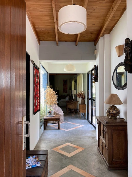 La casa se desarrolla toda en planta baja, con tres dormitorios, mas el de servicio, tres baños. Esta bien equipada, con vajilla para 12 personas, todos los electrodomesticos necesarios para pasar un jornada agradable. No tiene ropa de cama, pero se puede alquilar con facilidad.