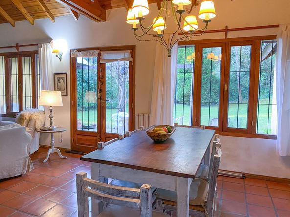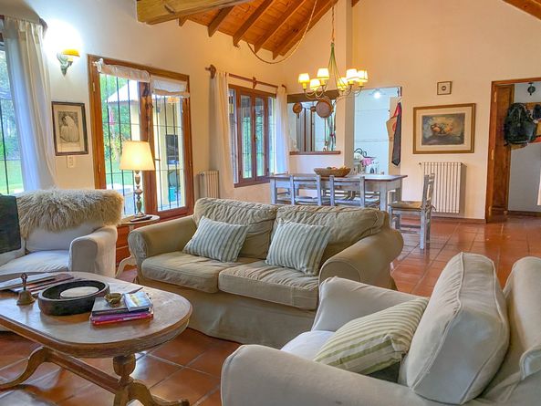 Casa estilo de campo ubicada en excelente zona de Cariló. A tres cuadras del centro, Cóndor y Mirlo. 3 dormitorios (uno en suite), 2 baños, cocina integrada con el living. Hermoso jardín.