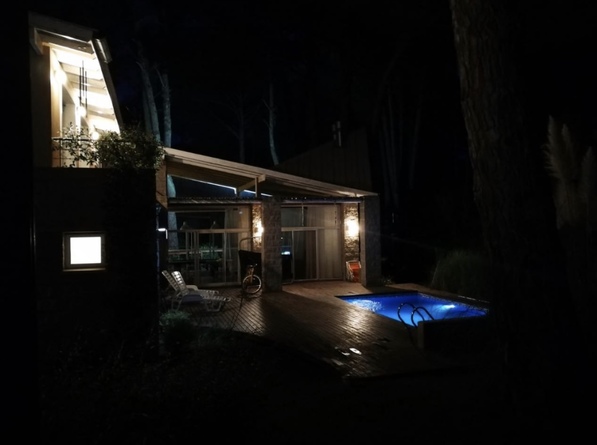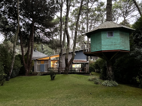 Casa en 2 plantas , cuatro dormitorios , dos en planta baja ( matrimoniales) dos en planta alta uno balconea al living estilo playroom, tres baños completos , cocina muy completa con gran heladera, frezer , cocina industrial, cafetera express, pava eléctrica, microondas, licuadora, tostadora y más. Quincho semi cubierto con mesada y bacha para lavar , parrilla, Lavarropas automático, deck con vista al bosque , ducha exterior de agua caliente y fría .En el frente de la casa gran deck con pileta. Servicio de jardinero y piletero, riego automático, alarma monitoreada, internet, wifi y Direct tv. Todos los servicios se incluyen en la tarifa de alquiler, dueño directo sin comicios . Aire acondicionado y calefacción central .