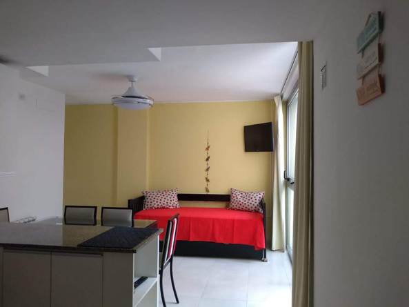 Cuenta con 1 dormitorio con cama matrimonial, living comedor con diván cama para 2 personas, cocina totalmente equipada, heladera con freezer, tv con cable, wifi.