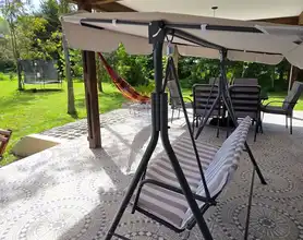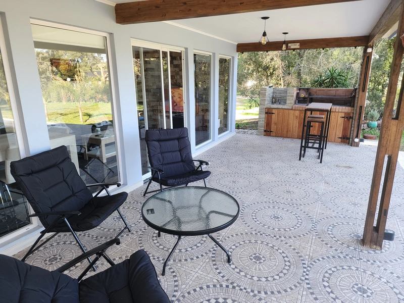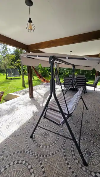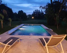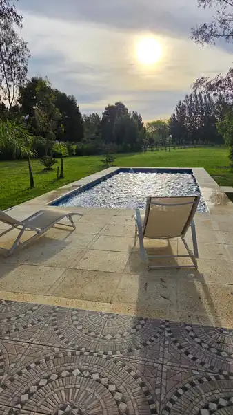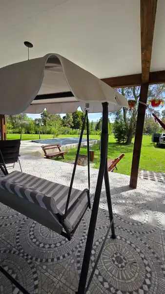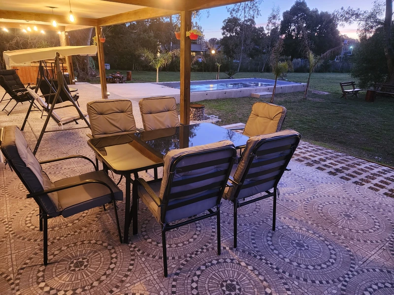 El predio cuenta con 3.000 mts2 de parque propio, arboleda, con cama elastica y pileta, todo a disposición solo para usted (no es compartido).