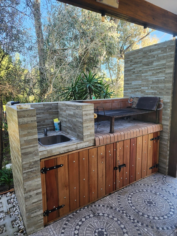 Parrilla al aire libre y un fogonero independiente para ocio.