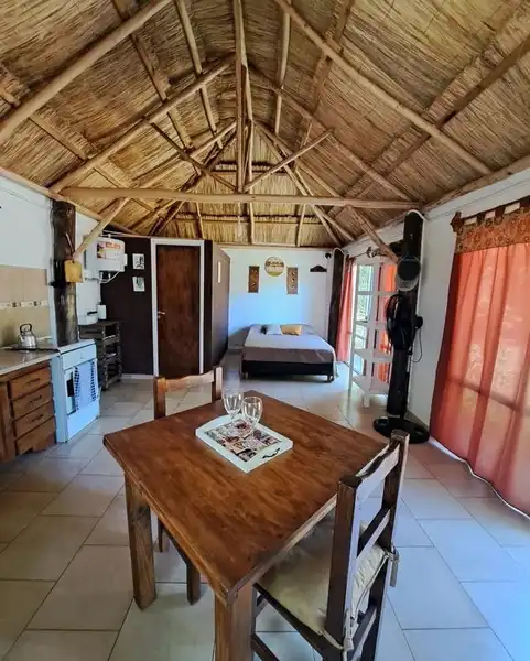 Son 2 cabañas : Amarella y El quincho. Con cama matrimonial, vajilla, cocina con horno, pava eléctrica, termotanque eléctrico, heladera, Smart tv con Wi-Fi, ventilador, frazadas,baño completo,