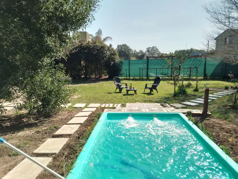 Pileta ,arboleda con mucha sombra y parrilla con mesa afuera, amplio lote con pileta ubicado a 80 mts de la laguna en el barrio Lomas Altas. Zona de Casaquintas Ideal para descansar y disfrutar la naturaleza. El barrio cuenta con almacén, carnicería, heladería, restó, servicio de remis, alquiler de caballos y botes.