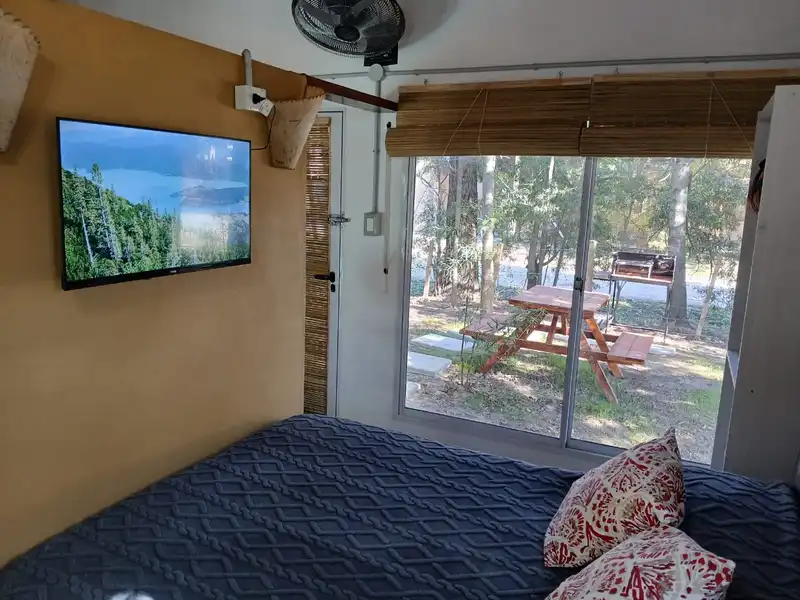 Fui por un día, el lugar esta del otro lado del centro, la TV es smart pero no tiene canales de cable diponibles , la calefacción es con un caloventor pequeño que no se puede encender mucho tiempo porque salta la térmica, no tiene mucha seguridad dado que son todas puertas de vidrio que sierran con una simple llave. Es un quincho cerrado con una cama, safa para una noche. Son amables en la atención y flexibles en el horario de entrada y salida.