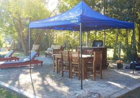 en el exterior espacio de 70m.con gazebo mesa y sillas(6) barcito con vajilla para el sector exterior.parrilla Tromen.
