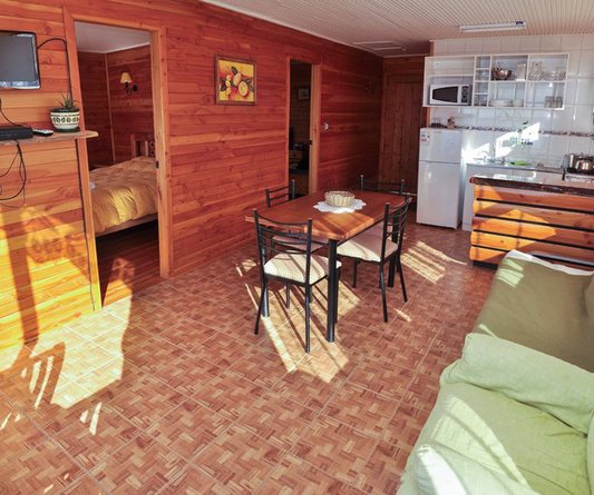 Equipamiento: Las cabañas están equipadas completamente y cuentan con cocina rustica, refrigerador, vajilla, baño completo, calefón, televisor, living-comedor, wifi, parrilla para asados y los dormitorios cuentan frazadas, cobertor y cajoneras.