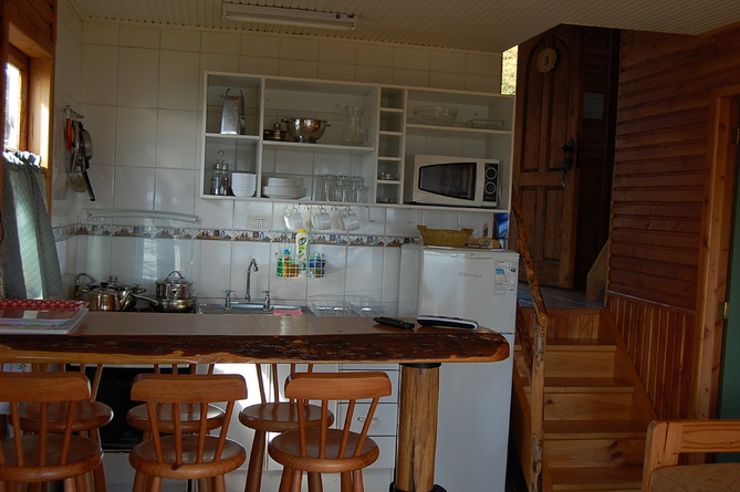 Equipamiento: Las cabañas están equipadas completamente y cuentan con cocina rustica, refrigerador, vajilla, baño completo, calefón, televisor, living-comedor, wifi y los dormitorios cuentan frazadas, cobertor y cajoneras.