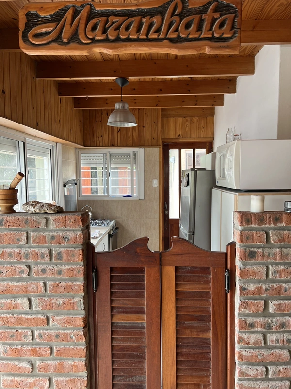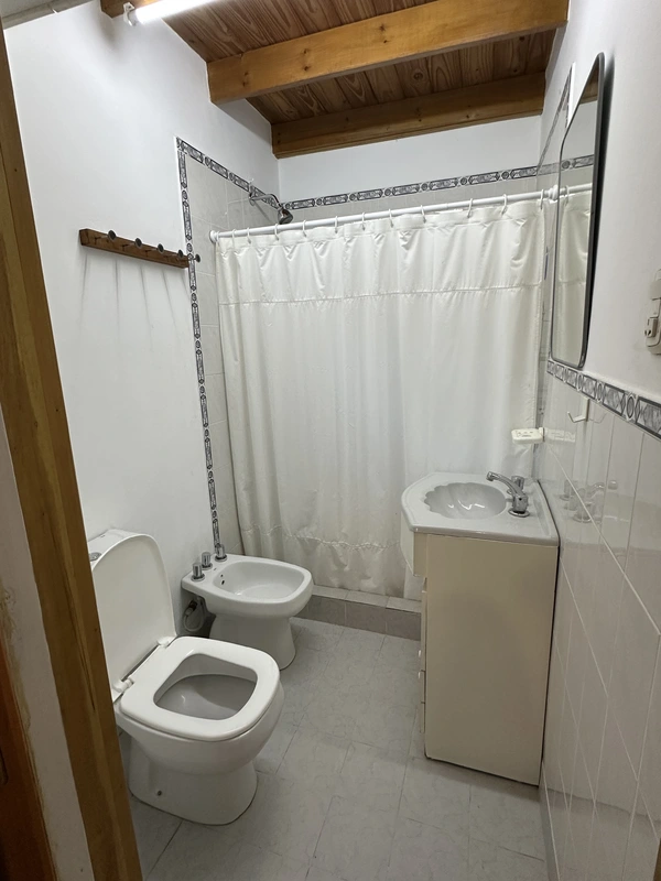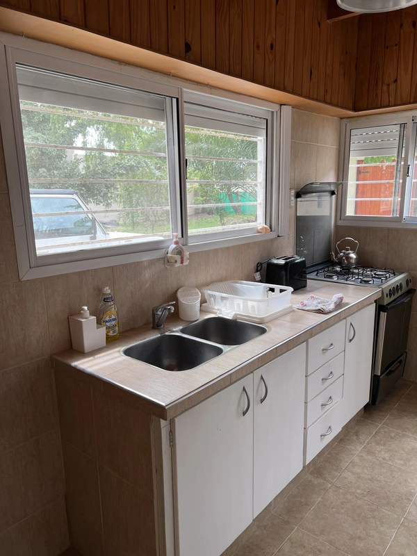 Planta baja: baño completo. Living-comedor. Ventilador de techo. Sillones. Televisor.  Cocina. Heladera con freezer. Microondas. Pava eléctrica. Tostadora. Vajilla completa.