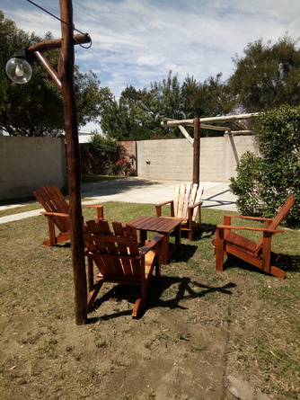 Amplio patio exterior, con parrillas , sillas y mesas .