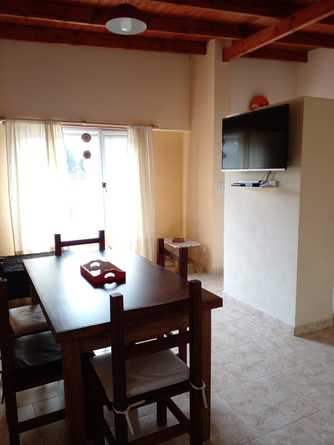 Living comedor con cocina incorporada, 1 baño completo, 2 dormitorios Tv. 32 " con Direc Tv, WI FI, heladera con freezer, microondas,. Capacidad hasta cinco personas (grupo familiar).Parrilla, jardín, entrada de vehículos.