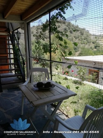 Tres cabañas completamente equipadas para 4 y 7 y 9 personas, con todas las habilitaciones al día, en medio de un paisaje absorbente, rodeadas por el río Grande y a tan solo unos pasos del impactante dique Esteban Agüero y los estanques que forma donde se puede nadar y disfrutar de la frescura del agua natural. Cerca de todos los servicios (desde negocios con productos de primera necesidad hasta asistencia médica pública, zona de pesca, rutas naturales y museos) pero íntimo y pacífico en una ubicación inmejorable sin renunciar a todas las comodidades.
