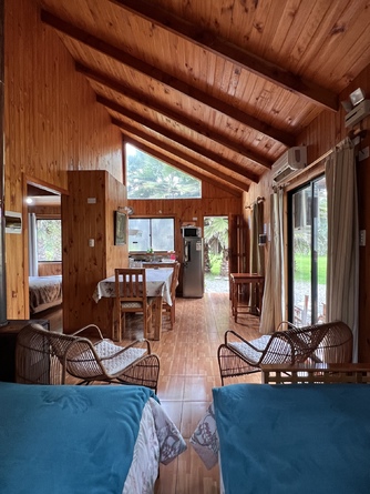 Cabañas cercanas al lago Machicura, un espacio amplio con muchas áreas verdes, piscina, tinaja de agua caliente.