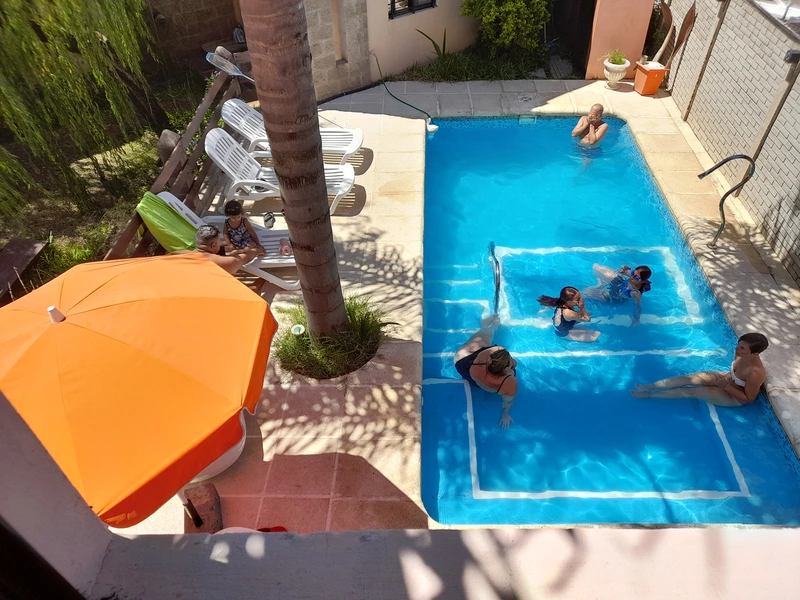 POSEE PISCINA DE VERANO, CON AGUA TEMPLADA Y JACUZZI-PISCINA CON CAPACIDAD HASTA 8 PERSONAS, EN UN AMBIENTE CERRADO, VIDRIADO, CON UNA AGRADABLE VISTA.