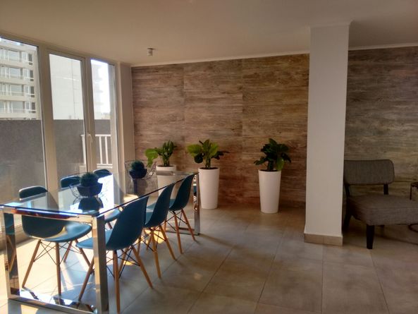 Nuevo. Totalmente equipado. Decoración moderna. A metros del supermercado Líder y del Mall para ir de compras. Costanera de Bio Bio y Universidad Santo Tome. Entre los espacios comunes cuenta con gimnasio, quincho, parrilla, lavadero automático, cochera, sala de estar con wi fi.