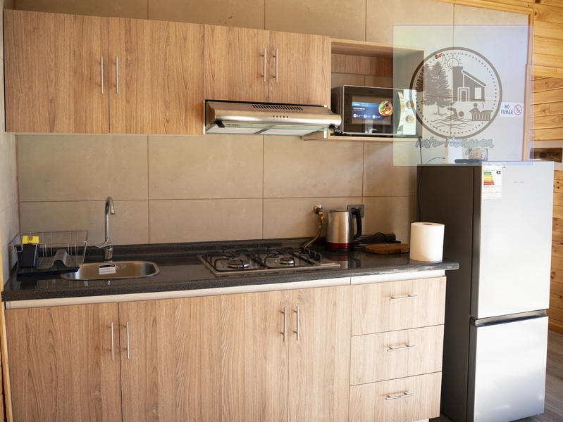 La cocina contiene, vajilla y utensilios de cocina, refrigerador, microondas, hervidor, cocina a gas. Su estadía le permite acceso gratuito a la piscina. Puede realizar senderismo en reserva Nonguen. Nos ocupamos de la higiene de la cabaña y entorno para una grata estadía de nuestros visitantes.