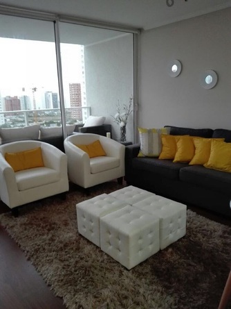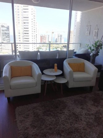 Excelente departamento en Concón: Foresta de Montemar, cocina totalmente equipada, living comedor, LED 46", sofá cama 2 plazas, 1 dormitorio matrimonial con baño privado, LED 43", 1 dormitorio con camarote, 1 baño de visita, amplia terraza. El edificio cuenta con piscina temperada, piscina al aire libre, gimnasio, quinchos, sala de eventos.