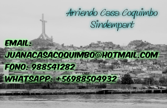 Se arrienda casa en coquimbo, sector sindempart, habilitada para 6 personas, cuenta con comodas habitaciones, cable Tv y Wifi, baño, living comedor, cocina, entrada de vehiculo, a pasos de supermercado Unimarc y a 20 min de playa La Herradura.
