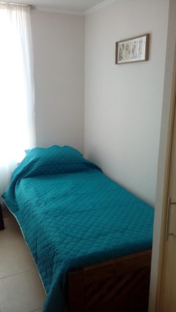 Departamento totalmente equipado con estacionamiento privado. El dormitorio principal tiene un box spring de 2 plazas, el segundo una litera y el tercero una cama de 1 plaza, más el sofá cama. Cuenta con nevera, microondas, lavadora, hervidor, TV pantalla plana y equipo de música. El condominio Marina Sol 3 cuenta con piscina, salas multiuso, quinchos, lavandería y wifi. Temporada baja a $45.000. Alta $70.000