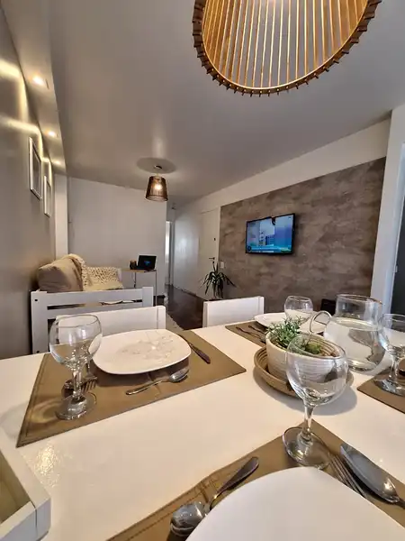 El apartamento dispone de un balcón y vistas a la ciudad e incluye 1 dormitorio, sala de estar, TV de pantalla plana por cable, cocina equipada y 1 baño con bidet y ducha. Hay toallas y ropa de cama en el apartamento.