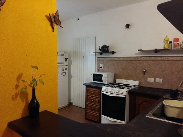 Dispone de una cocina-comedor, una habitacion matrimonial , un baño completo y jardin con mesa, sillas y reposera. Equipada con sommier (colchon alta densidad) , cocina con horno, microondas, heladera con freezer, calefaccion , ventilador, cortinas roller black out, tv con direct tv, wifi.