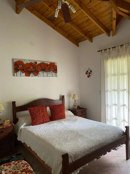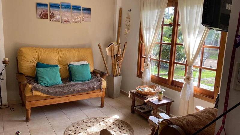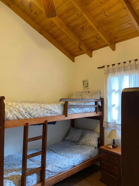 Se trata de una casa tipo duplex con dos dormitorios (el principal con vestidor, TV 50” con Netflix, Prime, etc. y balcón) y baño completo en piso alto, con ventilador de techo y amplios placards.
