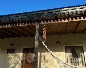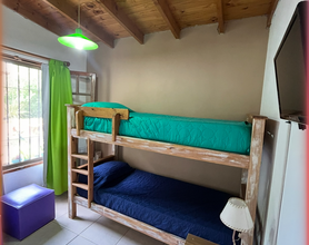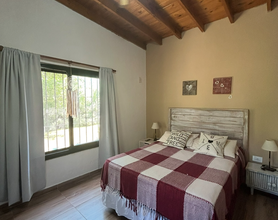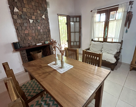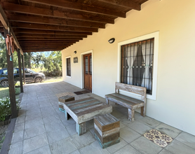 Pequeña casa de campo, ubicada en medio de la naturaleza!!! Ubicada en calle Las Madreselvas 118 y Avda.1. Amplia galería con un living de madera rústico y una Amaca paraguaya. Cocina comedor integrados, mesa para 4, sillón, TV led, heladera con amplio freezer, microondas, pava eléctrica, cocina con horno, utensilios de cocina y para el asado, ventilador de pie y hogar a leña. Amplia habitación matrimonial con somier, ventilador de techo, calefacción con placa, S-Mart TV, lugar de guardado, acolchados y espejo empotrado en pared. La otra habitación tiene 1 cama cucheta S-Mart TV, placard y acolchados. Baño con seca ropas, parrilla techada con mesa y 4 sillas de plástico y sector de lavado, amplio parque, Servicio de: wifi, cable, alarma, luz de emergencia. Tres reposeras, una sombrilla, juegos de mesa y de playa