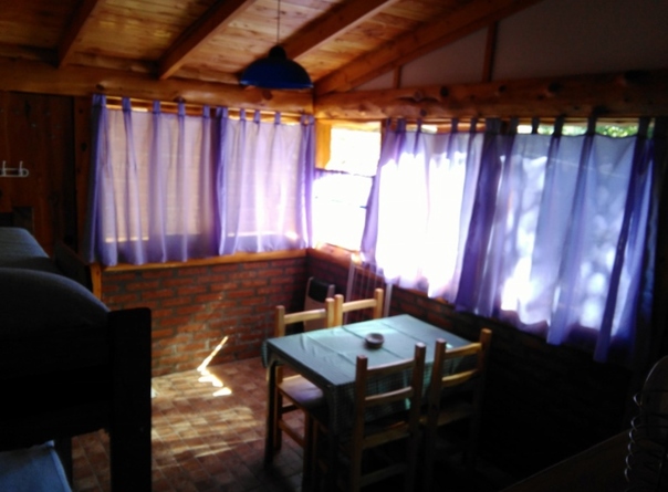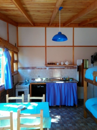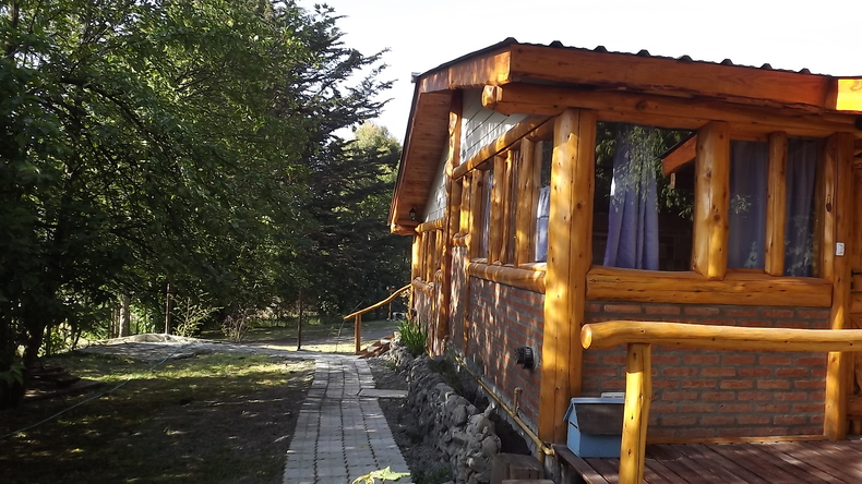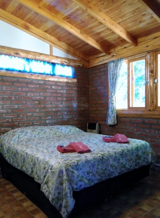 Cabaña de 2 ambientes, totalmente equipada. Consta de: un dormitorio, en el que se puede optar por 2 juegos de sommier de 1 plaza, o un juego de sommier de 2 y 1/2 plazas; cocina comedor (en el que hay una cucheta con dos colchones de 1 plaza); y baño completo. Ubicada sobre la Ruta Nacional 40, cerca del Paralelo 42º, con excelentes vistas al valle de El Bolsón, la Cordillera y el Cerro Piltriquitrón