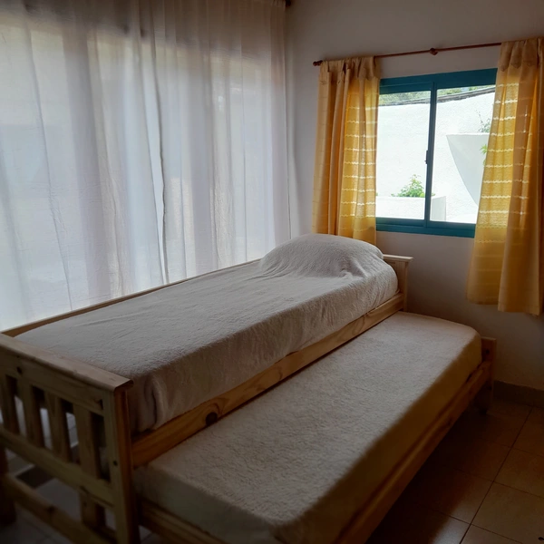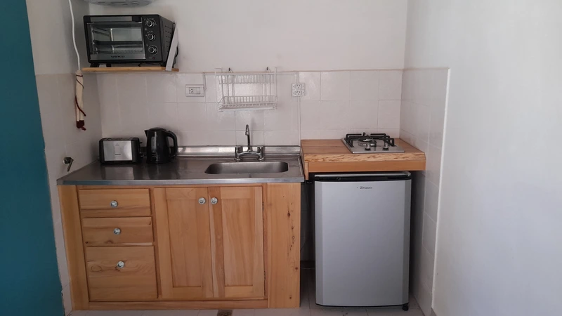 Cuenta con cocina comedor, con sillon cama de 1 plaza y 1 cama carrito alta .Ambas con colchones nuevos de alta densidad.