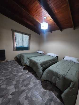 Consta de 2 habitaciones, una con cama matrimonial y otra con 3 camas individuales.