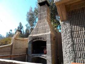 Terraza lateral: Asadera al aire libre barbacoa profesional estilo uruguayo .