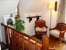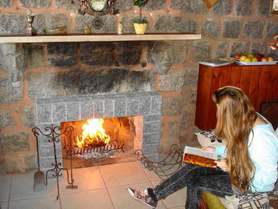 Estar 1° piso: Linda vista al mar, juego de living sofá y dos sitiales, televisor, DVD y equipo de música, estufa a gas con envase chico de 5kilos. Chimenea construida en piedra natural con rostros esculpidos en roca.