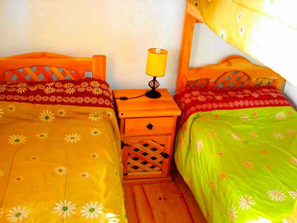 Dormitorio N°2: Un camarote de una plaza, una cama de una plaza, las tres camas con colchones de resortes Cic, tres frazadas cada cama, cubrecamas y almohadas.