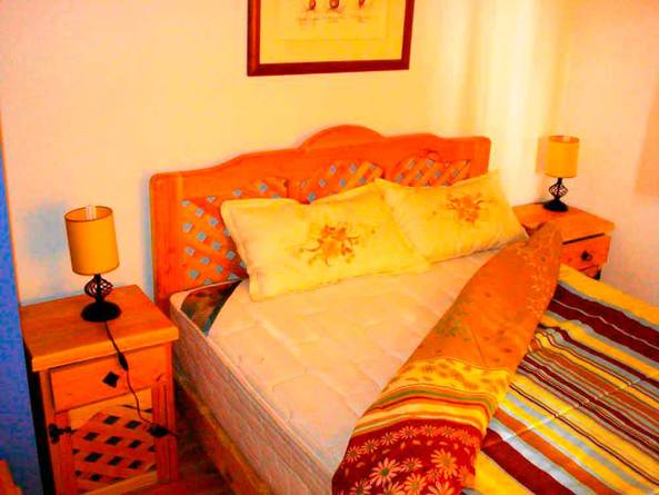 Dormitorio N°1 "Matrimonial": Una cama de 2 plazas con colchón de resortes Cic, tres frazadas, cubrecama, almohadas y televisor".