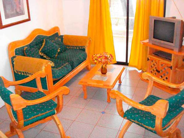 Estar: Juego de living sofá y dos sillones, televisor, DVD y estufa a gas con envase chico de 5kilos.