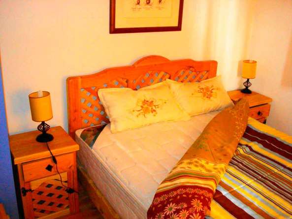 Dormitorio N°1 "Matrimonial": Una cama de 2 plazas con colchón de resortes Cic, tres frazadas, cubrecama, almohadas y televisor".