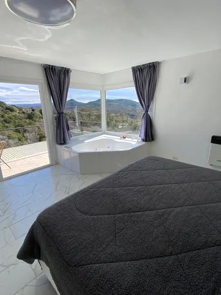 Disfruta de una experiencia única en nuestra amplia cabaña en las sierras de Embalse, ideal para parejas o grupos de hasta 6 personas. Relájate en el jacuzzi con vistas espectaculares y organiza una parrillada en el asador bajo el cielo estrellado. Espacios luminosos y cocina equipada para compartir momentos especiales. El entorno natural es perfecto para desconectar. ¡Reserva hoy y vive una escapada romántica o divertida en plena naturaleza!