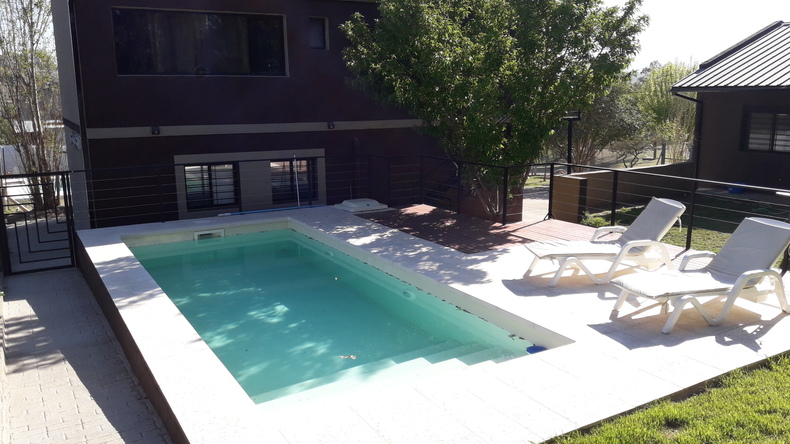 Departamento de 115 m2 con piscina de 30000 litros para 6 personas a estrenar en las sierras de Córdoba. Microondas, pava eléctrica, lavarropas automático, directv,aire acondicionado,cocina con horno, asadores interior y exterior. La cochera está techada y el perímetro está totalmente cerrado 680m2. La ubicación del inmueble se encuentra a 15 minutos en auto de Villa Carlos Paz. A 50 metros tenemos el monumento al indio bamba y a 800 metros está el río los Chorrillos. También el barrio cuenta con comercios generales cercanos.